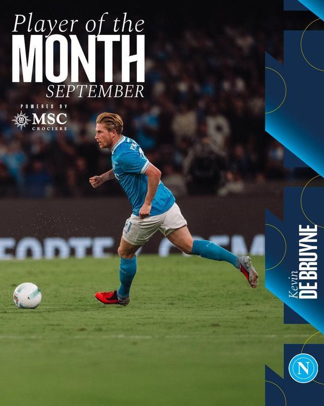 最终经过那不勒斯球迷投票,德布劳内当选那不勒斯队内9月最佳球员。
